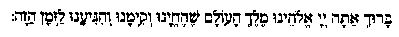 Благословен, Ты, Бог, Господин наш. Царь Вселенной, который дал нам жить и поддержал нас и дал нам дойти до сего дня.